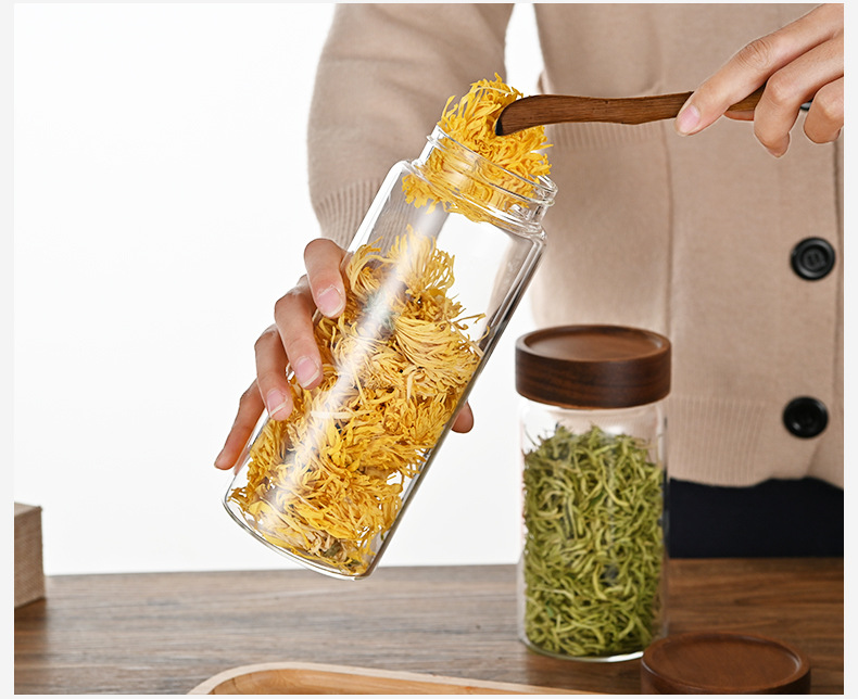 High Borosilicate Transparent Tape Cover Tea Tank Glass Storage Tank Tea Glass Tank Bamboo Storage Tank Daily Storage